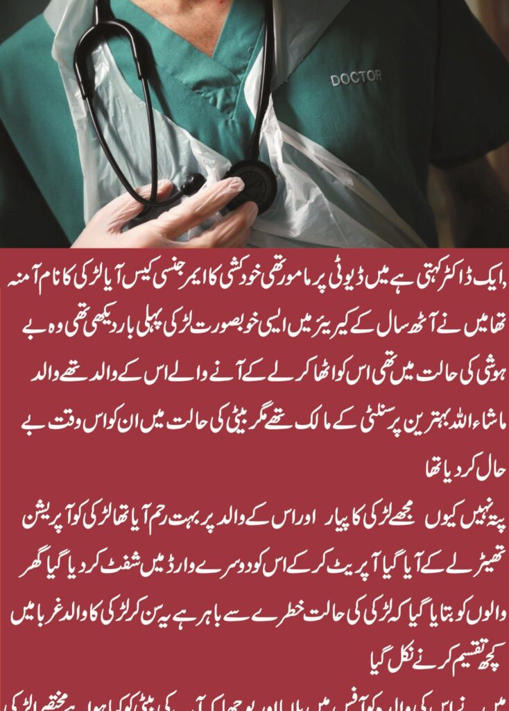 🥀ایک ڈاکٹر کہتی ہے میں ڈیوٹی پر مامور تھی خودکشی کا ایمرجنسی کیس آیا